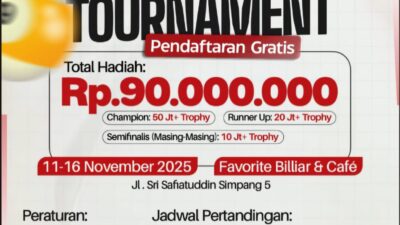 Turnamen Biliar Mencari Bibit Potensial Berhadiah Rp90 Juta