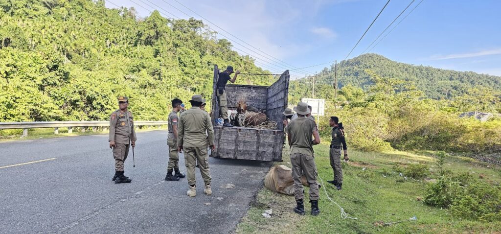 LIMANEWS.ID, Calang – Satpol-PP (Satuan Polisi Pamong Praja) Aceh Jaya bersama tim terpadu berhasil menangkap 23 ternak berkeliaran dalam penegakan sesui Qanun Nomo 11 Tahun 2021 tentang penertipan ternak dalam Kabupaten Aceh Jaya, Calang Rabu Rabu 23 Oktober 2024.