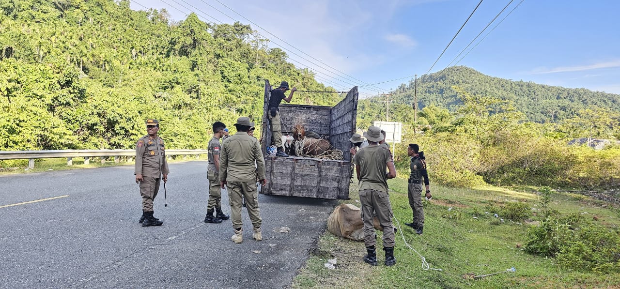 Ia, menambahkan, Petugas bersama tim berhasil menjaring/menangkap 23 ekor hewan ternak yang berkeliaran di jalan raya Banda Aceh – Meulaboh dengan rincian 3 (tiga) ekor sapi dan 20 (dua puluh) ekor kambing di beberapa titik lokasi dalam kecamatan Krueng Sabee, Setia Bakti dan Sampoiniet.