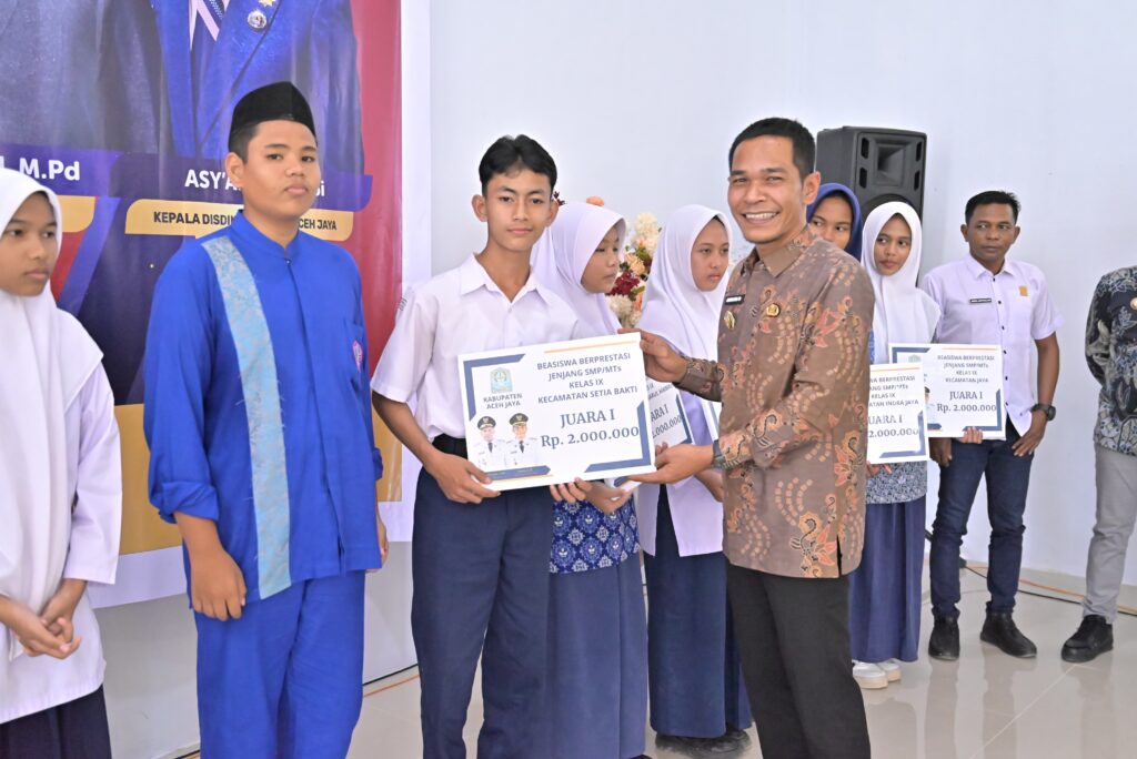 Disela-sela kesempatan tersebut, Bupati Aceh Jaya bersama Wakil Bupati serta Fokopimda Plus menyalurkan Beasiswa Siswa berprestasi yang telah mengikuti seleksi yang dilaksanakan Dinas Pendidikan dan Kebudayaan setempat berjumlah penerima 243 siswa-siswi berprestasi dari berbagai sekolah yang terdiri dari 162 siswa-siswi jenjang SD/MI dan 81 siswa-siswi jenjang SMP dalam Kabupaten Aceh Jaya. []