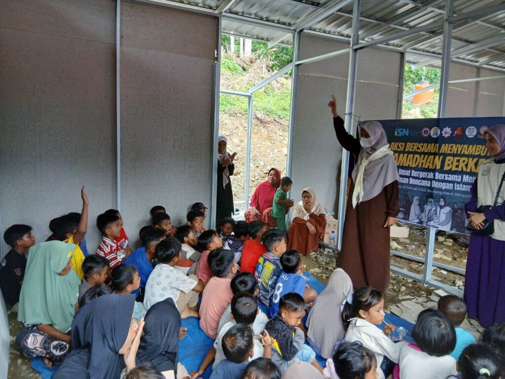 LIMANEWS.ID, Nagan Raya – ISN (Islam Selamatkan Negeri) bersama sejumlah komunitas dan lembaga kampus menggelar forum pemulihan psikososial bagi ibu-ibu dan anak-anak terdampak bencana di Beutong Beunggalang, Nagan Raya Ahad, 15 Februari 2026. Kegiatan ini berlangsung di hunian sementara (huntara) yang masih sederhana, dengan tujuan memberikan dukungan moral, spiritual, dan psikologis bagi warga yang masih berada di pengungsian.
