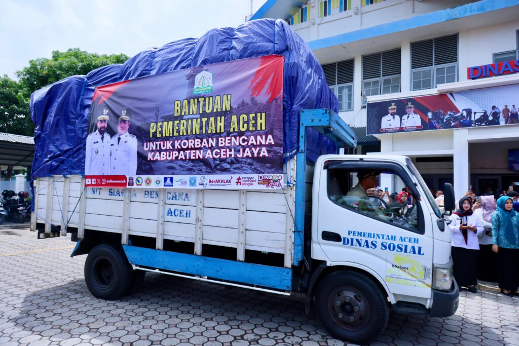 LIMANEWS.ID, BANDA ACEH – Ketua TP PKK Aceh Marlina Muzakir, lepas keberangkatan truk bantuan yang akan bertolak ke Aceh Jaya, Aceh Barat dan Nagan Raya untuk menyerahkan bantuan masa panik kepada korban banjir di tiga daerah tersebut.