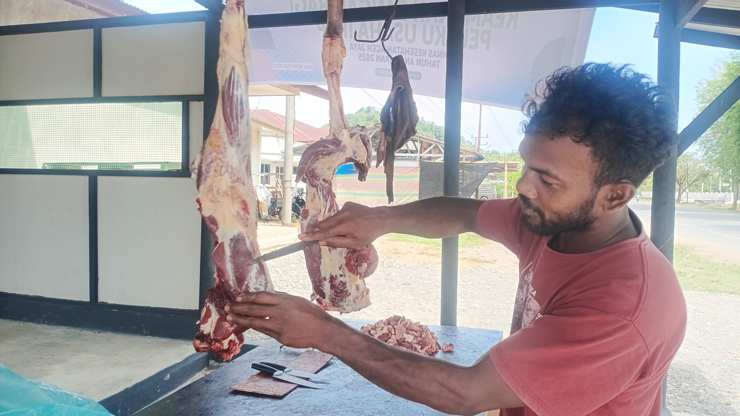 “Tentu harga daging di sini sangat terjangkau bagi masyarakat luas untuk harga daging Rp 150.000. / Kg. Sementara harga tulang mencapai Rp 80000 / Kg, harga ini tetap sama meski nantinya menghadapi hari meugang.” Katanya.