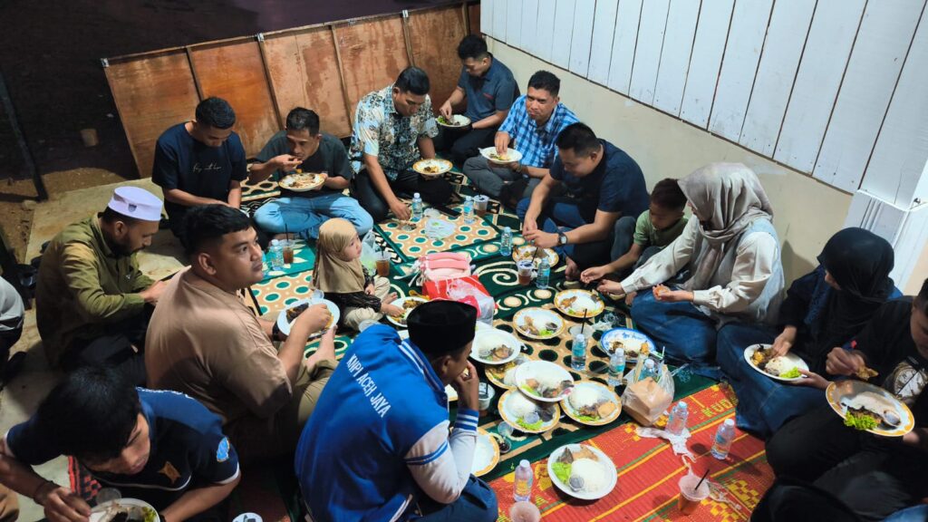 Momen berkumpul pengurus DPD KNPI Aceh Jaya tersebut dalam rangka buka puasa bersama di penghujung Ramadan 2026. Canda tawa antar pengurus tersentak diam kala langit meneteskan air yang disebut rintik, sesaat kemudian berubah menjadi hujan.
