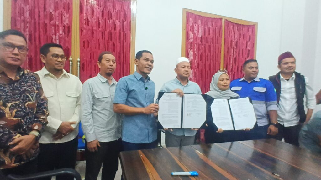 LIMANEWS.ID, Calang – Bupati Aceh Jaya Safwandi bersama Direktur Utama PT PSU (Pada Semesta Utama) Fitri Herowati H melakukan penandatanganan nota kesepahaman kerja sama dalam rangka Expor Batubara melalui pelabuhan calang di Pendopo Bupati Aceh Jaya, Sabtu 30 Oktober 2025.