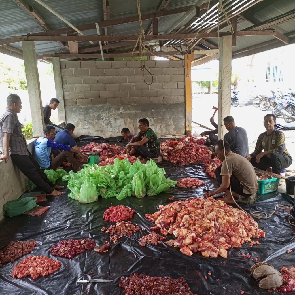 Selain itu dirinya menambahkan program tersebut perdana dilaksanakan dengan menyembelih 2 ekor sapi, “Tentu ini sangat selaras dengan tujuan Pemerintah Pusat maka kami akan terus mendukung program-program pro rakyat sebagaimana yang dijalankan Pemerintah Pusat maupun Pemerintah Daerah .” Tutup Samsuar []