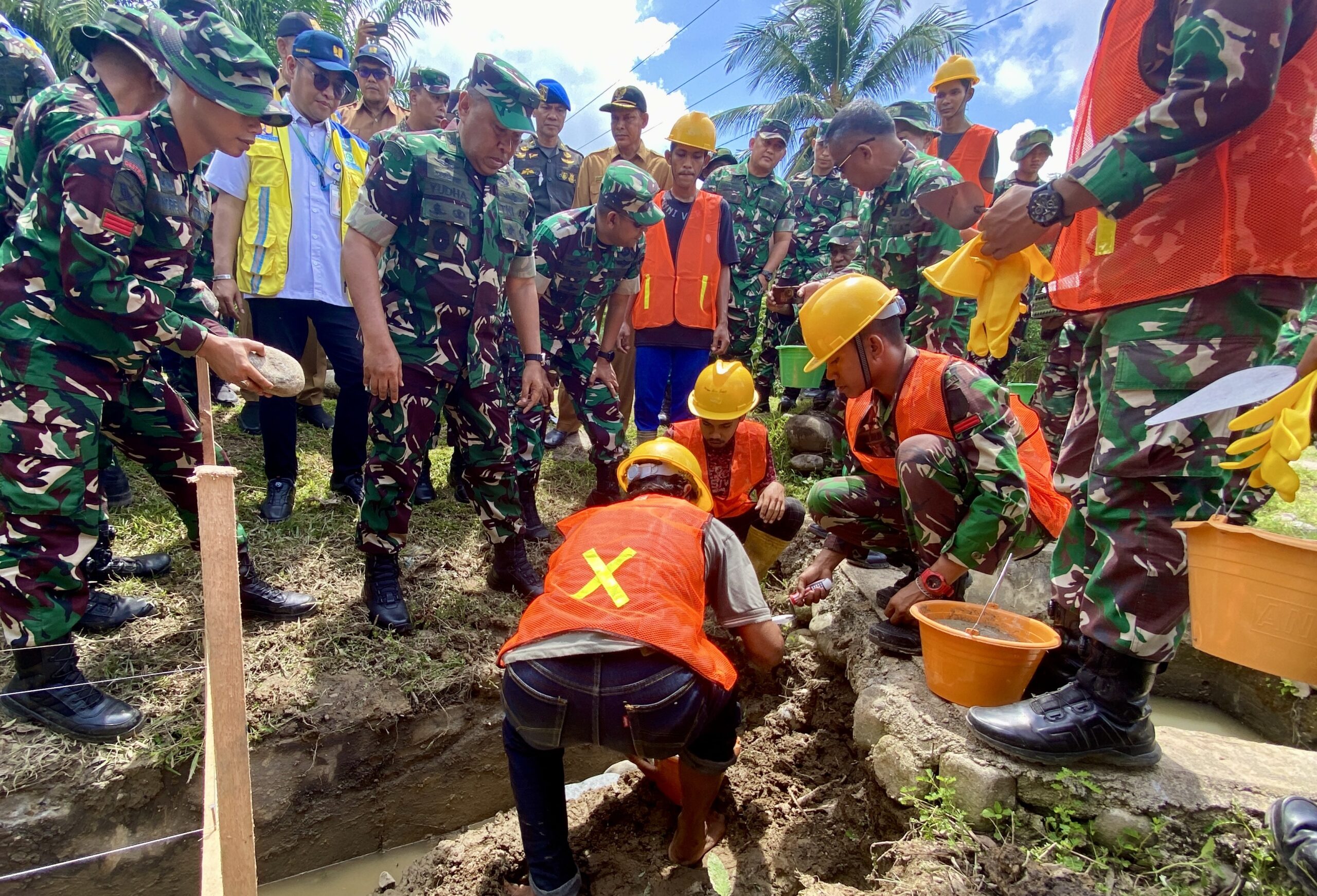 “Melalui kegiatan ini TNI bersama pemerintah daerah dan masyarakat bersinergi membangun infrastruktur pertanian vital, yakni jaringan irigasi tersier,” kata Kasdam.