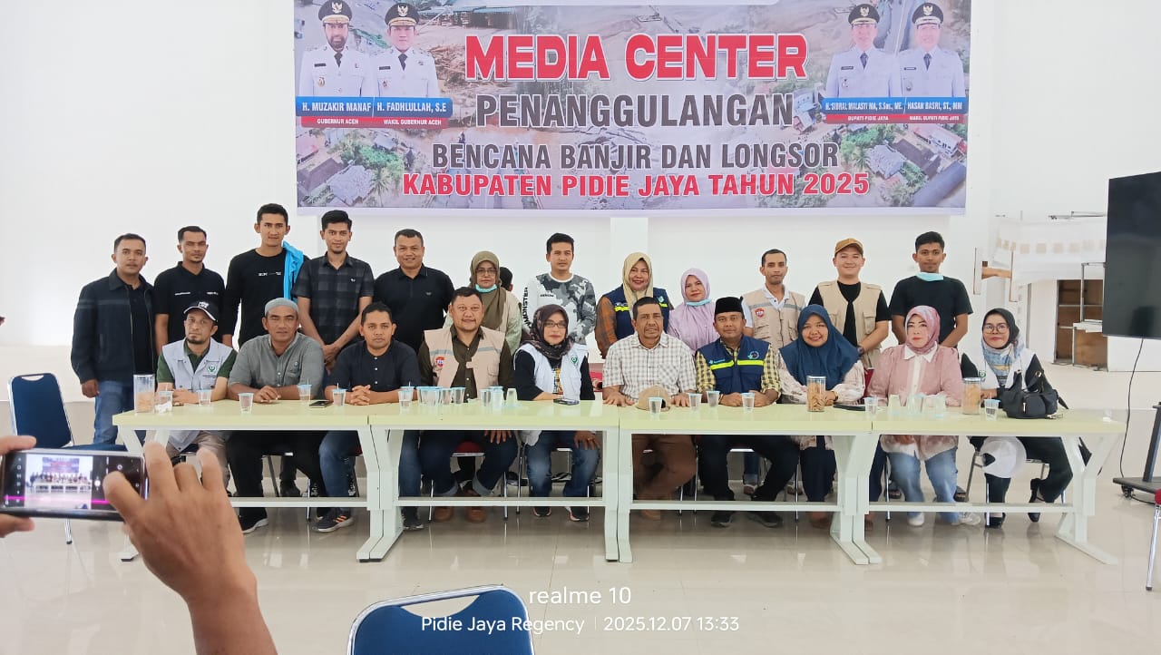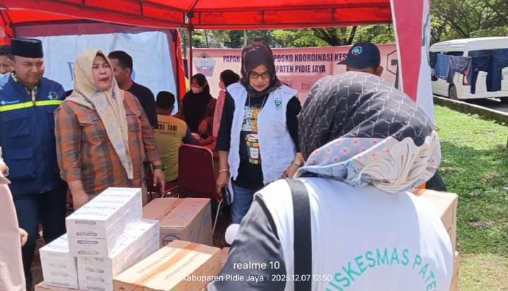 LIMANEWS.ID, Pidie Jaya – Pemerintah Kabupaten Aceh Jaya menyerahkan bantuan bagi korban bencana banjir dan longsor yang disambut langsung Wakil Bupati Pidie Jaya dalam bentuk sembako serta obat-obatan yang berlangsung Posko Media Center Penanggulangan Bencana Banjir dan Longsor Kabupaten Pidie Jaya, Minggu 7 Desember 2025.