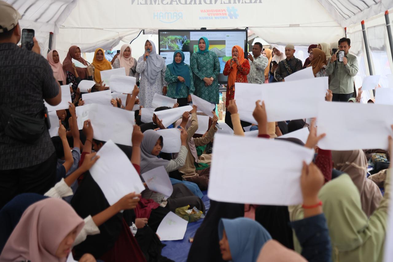 Pada kesempatan tersebut, Kak Na juga memberi motivasi dan dorongan semangat kepada ratusan siswa di SD 6 Jamboe Aye, yang dengan tekun mengikuti proses belajar mengajar di tenda Sekolah Darurat